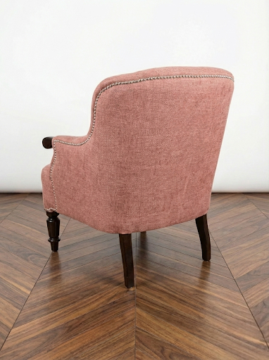Meble tapicerowane SZYMKOWIAK Zielona Góra Odnowiony różowy fotel z ćwiekami renowacja Zielona Góra